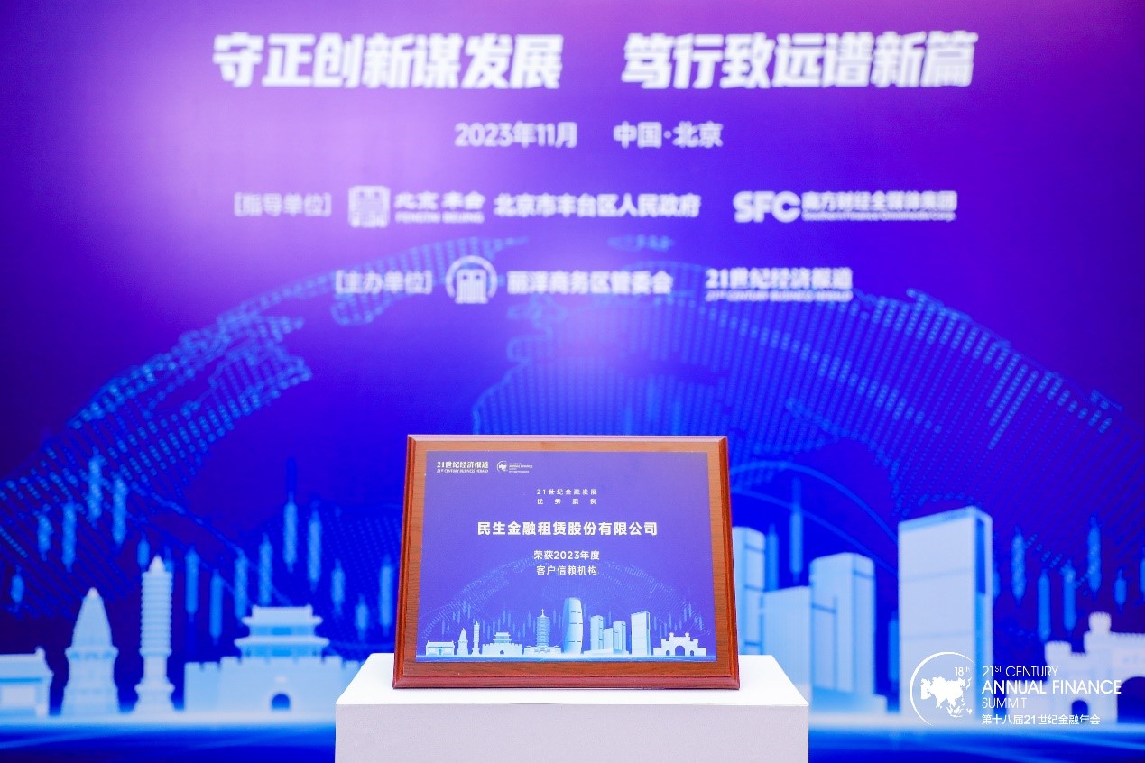 近日,由二十一世纪经济报社主办的“21世纪金融发展优秀案例(2023)”活动在相关金融机构中征集优秀案例,民生金租凭借在普惠金融领域的出众表现,获得评审专家团队的一致肯定,喜获“客户信赖机构”荣誉,成为榜单中唯一获此殊荣的金融租赁企业。